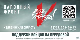 Уважаемые южноуральцы! Каждый из нас чувствует потребность помочь нашим бойцам, которые защищают Родину. Сделать это просто — поддержите сбор Народного фронта «Всё для Победы»! На собранные средства Народный фронт закупает самое необходимое: квадрокоптеры, тепловизоры, средства связи, строительные инструменты, экипировку и многое другое. Ваша помощь — это реальный вклад в нашу общую Победу. Вы можете передать оборудование или сделать денежное пожертвование. О том, как помочь и перечислить денежные средства, уточняйте по телефону: 8-351-264-64-13 или напишите на почту 74region@onf.ru