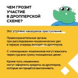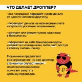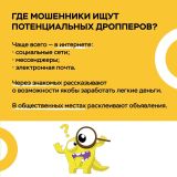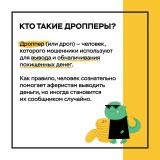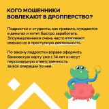 В карточках объясняем, как мошенники выводят деньги со счетов с помощью дропперов, и что нужно обязательно обсудить с подростками.