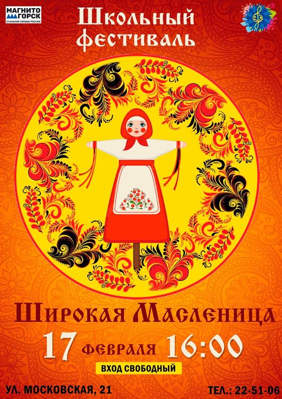 Приглашаем учащихся поучаствовать в фестивале « Широкая Масленица». В программе фестиваля будет мастер-класс, конкурсы, песни, и в завершении праздничное угощение!